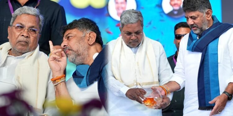 ಬೆಂಗಳೂರು : ಪವರ್ ಶೇರಿಂಗ್ ಜಟಾಪಟಿ ಮಧ್ಯೆ ಸಿಎಂ ಸಿದ್ದರಾಮಯ್ಯ ಹಾಗೂ ಡಿಸಿಎಂ ಡಿಕೆ ಶಿವಕುಮಾರ್ ಒಂದೇ ವೇದಿಕೆಯಲ್ಲಿ ಕಾಣಿಸಿಕೊಂಡಿದ್ದಾರೆ.