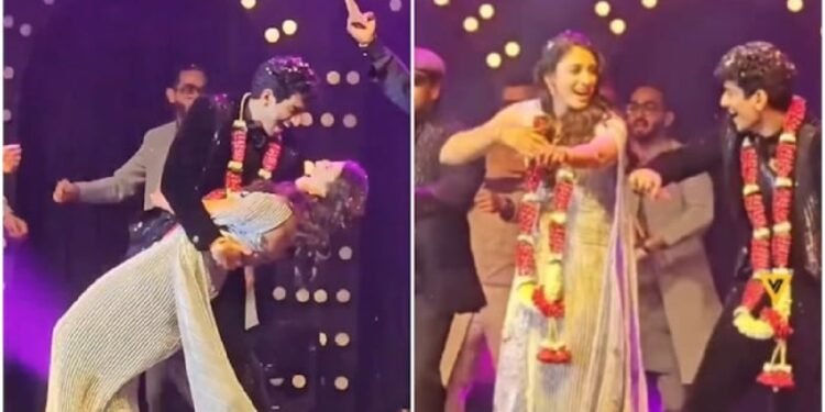 ಸ್ಮೃತಿ ಮತ್ತು ಪಲಾಶ್ ಸಖತ್ ಡ್ಯಾನ್ಸ್ ಮಾಡಿರುವ ವಿಡಿಯೋವೊಂದು ವೈರಲ್ ಆಗಿದೆ. ಪಲಾಶ್ ಅವರ ಕುತ್ತಿಗೆಗೆ ಸ್ಮೃತಿ ಹಾರ ಹಾಕಿದ್ದಾರೆ. ವೀಡಿಯೊಗಳಲ್ಲಿ ಸ್ಮೃತಿ ಮತ್ತು ಪಲಾಶ್ ‘ಸಲಾಮ್-ಎ-ಇಷ್ಕ್’ ಚಿತ್ರದ ‘ತೆನು ಲೆ ಕೆ ಮೈ ಜವಾಂಗಾ’ ಹಾಡಿಗೆ ಡ್ಯಾನ್ಸ್ ಮಾಡಿದ್ದಾರೆ. ಪ್ರದರ್ಶನದ ಸಮಯದಲ್ಲಿ, ಜೋಡಿ ತಮ್ಮ ನೃತ್ಯವನ್ನು ಪ್ರಾರಂಭಿಸುವ ಮೊದಲು ಸ್ಮೃತಿ ಪಲಾಶ್ ಅವರ ಕುತ್ತಿಗೆಗೆ ಹಾರವನ್ನು ಹಾಕಿದರು. ಮತ್ತೊಂದು ವೀಡಿಯೊದಲ್ಲಿ ಪಲಾಶ್ ‘ಗುಲಾಬಿ ಆಂಖೇ’ ಎಂಬ ಐಕಾನಿಕ್ ಹಾಡಿಗೆ ಹೆಜ್ಜೆ ಹಾಕಿದ್ದಾರೆ.