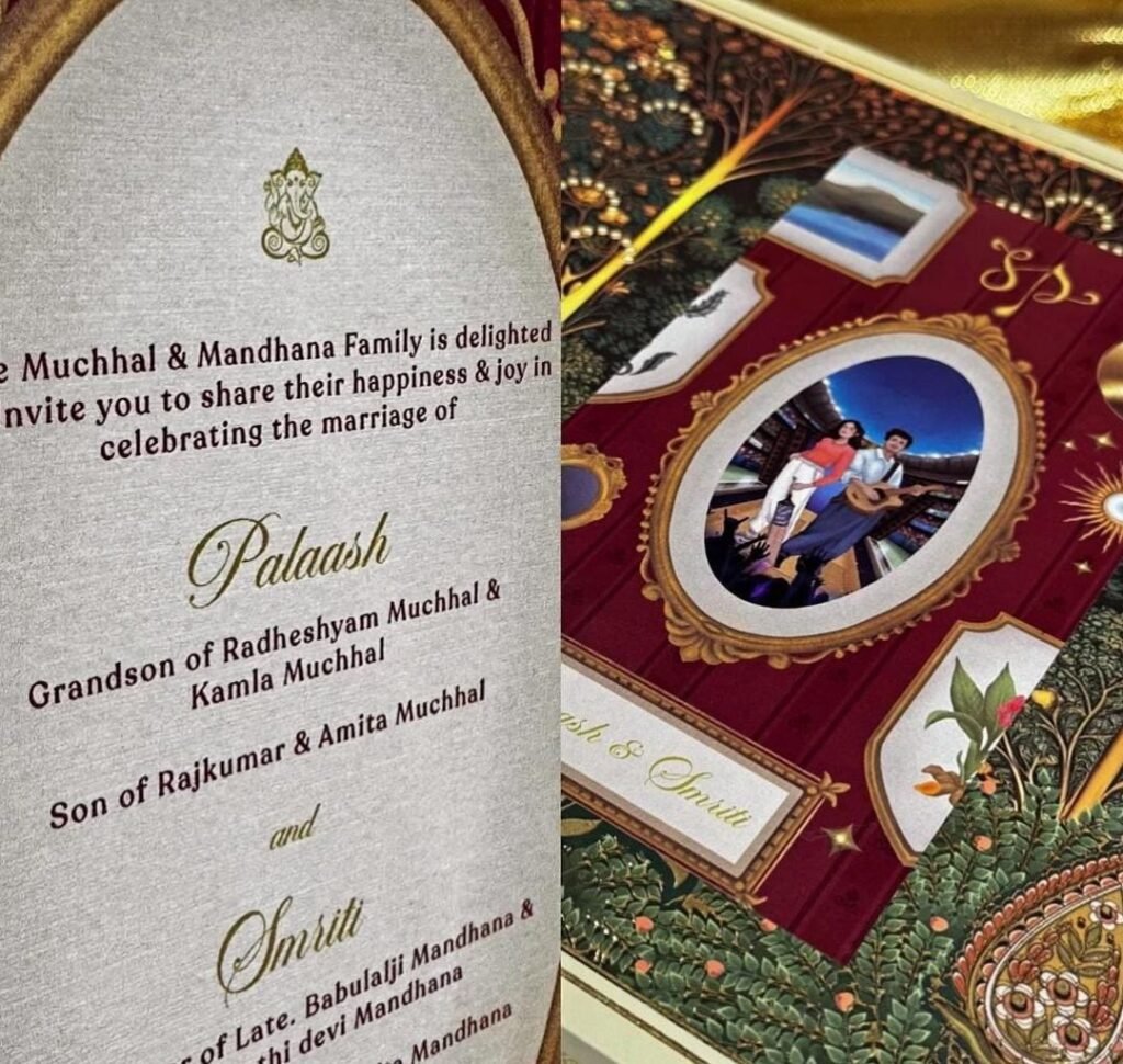 ಸ್ಮೃತಿ ಮಂಧಾನಾ ಅವರ ಅಭಿಮಾನಿಯೊಬ್ಬರು ಹಂಚಿಕೊಂಡ ಈ ವೈರಲ್ ಚಿತ್ರದಲ್ಲಿ, ಸ್ಮೃತಿ ಹಾಗೂ ಗಾಯಕ-ಸಂಯೋಜಕ ಪಲಾಶ್ ಮುಚ್ಚಲ್ ಅವರ ವಿವಾಹದ ವಿವರಗಳಿವೆ. ಈ ಕಾರ್ಡ್ ಪ್ರಕಾರ, ವಿವಾಹ ಸಮಾರಂಭವು ನವೆಂಬರ್ 2025 ರಲ್ಲಿ ಮಹಾರಾಷ್ಟ್ರದಲ್ಲಿರುವ ಅವರ ಹುಟ್ಟೂರಾದ ಸಾಂಗ್ಲಿಯಲ್ಲಿ ನಡೆಯಲಿದೆ. ಆಮಂತ್ರಣ ಪತ್ರಿಕೆಯಲ್ಲಿ ಇಬ್ಬರ ಪೋಷಕರು ಮತ್ತು ಅಜ್ಜ-ಅಜ್ಜಿಯರ ಹೆಸರುಗಳನ್ನು ಸರಿಯಾಗಿ ನಮೂದಿಸಲಾಗಿದ್ದು, ಇದು ಕಾರ್ಡ್ ನಿಜವಾಗಿರಬಹುದು ಎಂಬ ಅನುಮಾನವನ್ನು ಹೆಚ್ಚಿಸಿದೆ.