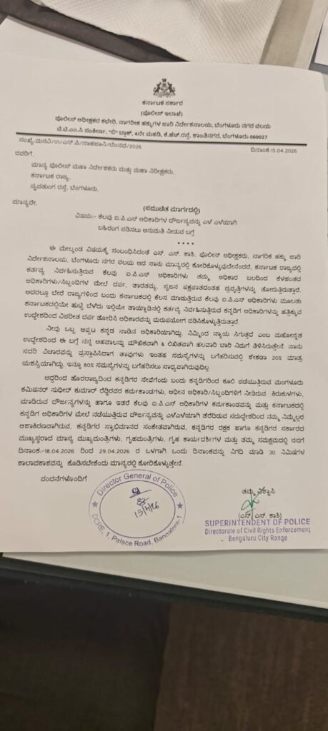 ರಾಜ್ಯದಲ್ಲಿ ಕರ್ತವ್ಯ ನಿರ್ವಹಿಸುತ್ತಿರುವ ಕೆಲವು ಐಪಿಎಸ್ ಅಧಿಕಾರಿಗಳು ತಮ್ಮ ಅಧಿಕಾರ ಬಲದಿಂದ ಕೆಳಹಂತದ ಅಧಿಕಾರಿಗಳು/ಸಿಬ್ಬಂದಿ ಮೇಲೆ ದರ್ಪ, ತಾರತಮ್ಯ, ಸ್ವಜನ ಪಕ್ಷಪಾತದಂತಹ ಪ್ರವೃತ್ತಿಗಳನ್ನು ತೋರುತ್ತಿರುತ್ತಾರೆ. ಅದರಲ್ಲೂ ಬೇರೆ ರಾಜ್ಯಗಳಿಂದ ಬಂದು ಕರ್ನಾಟಕದಲ್ಲಿ ಕೆಲಸ ಮಾಡುತ್ತಿರುವ ಕೆಲವು ಐಪಿಎಸ್ ಅಧಿಕಾರಿಗಳು ಮೂಲತಃ ಕರ್ನಾಟಕದಲ್ಲಿಯೇ ಹುಟ್ಟಿ ಬೆಳೆದು ಇಲ್ಲಿಯೇ ತಾಯ್ನಾಡಿನಲ್ಲಿ ಕರ್ತವ್ಯ ನಿರ್ವಹಿಸುತ್ತಿರುವ ಕನ್ನಡಿಗ ಅಧಿಕಾರಿಗಳನ್ನು ಹತ್ತಿಕ್ಕುವ ಉದ್ದೇಶದಿಂದ ವಿಪರೀತ ದರ್ಪ ತೋರಿಸಿ ಅಧಿಕಾರವನ್ನು ದುರುಪಯೋಗ ಪಡಿಸಿಕೊಳ್ಳುತ್ತಿರುತ್ತಾರೆ ಎಂದು ದೂರಿನಲ್ಲಿ ಎಸ್ಪಿ ಕಾಶಿ ತಿಳಿಸಿದ್ದಾರೆ.