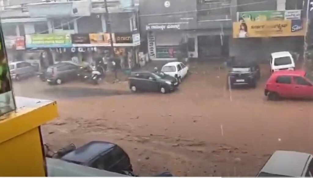 ಮೂಡಿಗೆರೆಯಲ್ಲಿ ಮಳೆಯ ಅಬ್ಬರ ತೀವ್ರವಾಗಿದ್ದು, ರಸ್ತೆಗಳು ನದಿಯಂತಾಗಿವೆ. ಚರಂಡಿಗಳು ತುಂಬಿ ಹರಿಯುತ್ತಿದ್ದು, ವಾಹನ ಸವಾರರು ಸಂಚರಿಸಲು ಪರದಾಡುವಂತಾಗಿದೆ.
