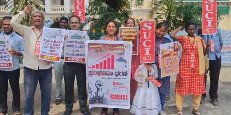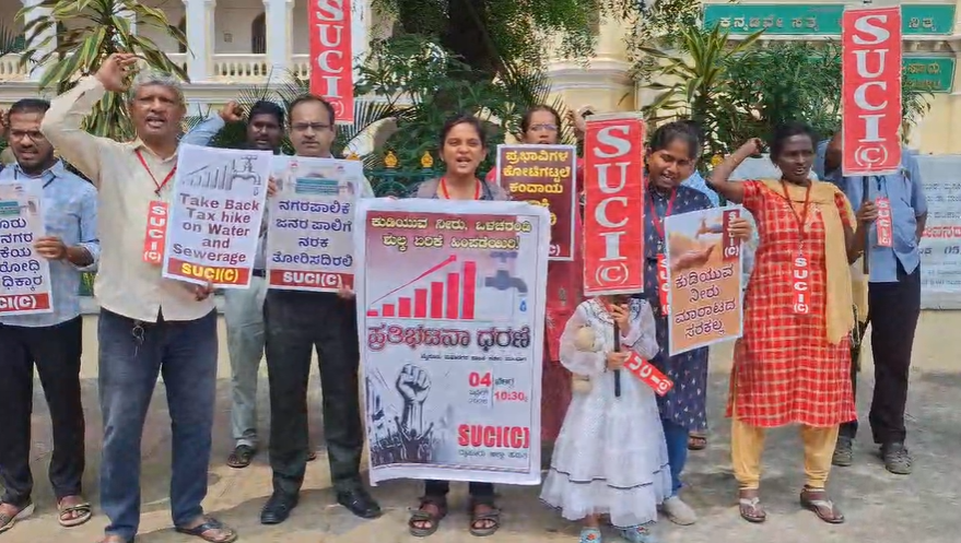 Tags: demanding reduction in water and electricity rates!Karnataka News beatSUCI organization protests