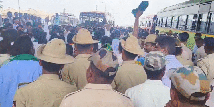 ರೈತರನ್ನು ವಶಕ್ಕೆ ಪಡೆಯಲು ಪೊಲೀಸರು ಮುಂದಾದಾಗ ರಾಷ್ಟ್ರೀಯ ಹೆದ್ದಾರಿಯಲ್ಲಿ ಹೈಡ್ರಾಮಾವೇ ನಡೆಯಿತು. ರೈತರನ್ನು ಒತ್ತಾಯಪೂರ್ವಕವಾಗಿ ರಸ್ತೆಯಿಂದ ವಾಪಸ್ ಕಳುಹಿಸಲು ಪೊಲೀಸರು ಮುಂದಾಗಿದ್ದ ವೇಳೆ ಪೊಲೀಸರು ಹಾಗೂ ರೈತರ ನಡುವೆ ಜಟಾಪಟಿ ನಡೆದಿದೆ.