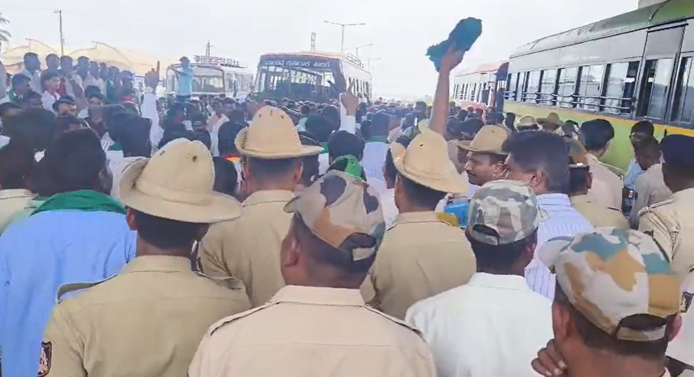 ರೈತರನ್ನು ವಶಕ್ಕೆ ಪಡೆಯಲು ಪೊಲೀಸರು ಮುಂದಾದಾಗ ರಾಷ್ಟ್ರೀಯ ಹೆದ್ದಾರಿಯಲ್ಲಿ ಹೈಡ್ರಾಮಾವೇ ನಡೆಯಿತು. ರೈತರನ್ನು ಒತ್ತಾಯಪೂರ್ವಕವಾಗಿ ರಸ್ತೆಯಿಂದ ವಾಪಸ್ ಕಳುಹಿಸಲು ಪೊಲೀಸರು ಮುಂದಾಗಿದ್ದ ವೇಳೆ ಪೊಲೀಸರು ಹಾಗೂ ರೈತರ ನಡುವೆ ಜಟಾಪಟಿ ನಡೆದಿದೆ.