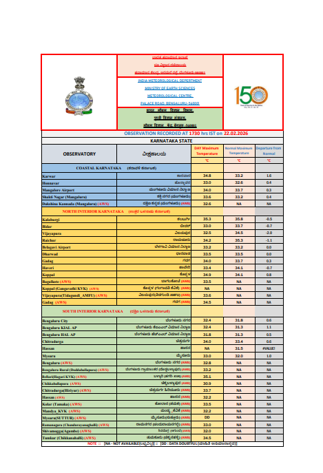 ಅದೇ ರೀತಿ ತುಮಕೂರು, ಚಿತ್ರದುರ್ಗ, ಕಾರವಾರ, ರಾಯಚೂರು ಹಾಗೂ ಕೊಪ್ಪಳ ಸೇರಿದಂತೆ ಹಲವು ಜಿಲ್ಲೆಗಳಲ್ಲಿ 34 ಡಿಗ್ರಿ ಸೆಲ್ಸಿಯಸ್ ಉಷ್ಣಾಂಶ ದಾಖಲಾಗಿದೆ. ಮುಂದಿನ 48 ಗಂಟೆಗಳಲ್ಲಿ ರಾಜ್ಯದ ಹಲವು ಭಾಗಗಳಲ್ಲಿ ತಾಪಮಾನದಲ್ಲಿ ಇನ್ನಷ್ಟು ಏರಿಕೆಯಾಗುವ ಸಾಧ್ಯತೆ ಇದೆ ಎಂದು ಹವಾಮಾನ ಇಲಾಖೆ ಸೂಚಿಸಿದೆ.