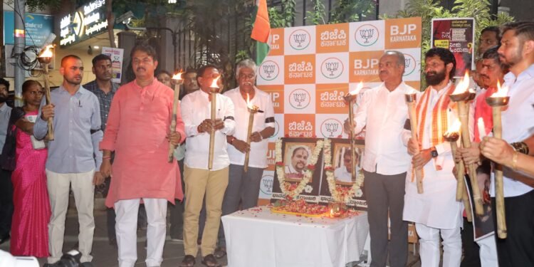 ಬೆಂಗಳೂರು: ಜಮ್ಮು – ಕಾಶ್ಮೀರದ ಪಹಲ್ಗಾಮ್ ನಲ್ಲಿ ನಿನ್ನೆ ನಡೆದ ಭಯೋತ್ಪಾದಕರ ದಾಳಿಯನ್ನು ಖಂಡಿಸಿ ಬಿಜೆಪಿ ರಾಜ್ಯ ಕಾರ್ಯಾಲಯ ಜಗನ್ನಾಥ ಭವನದ ಬಳಿ ಇಂದು ಕ್ಯಾಂಡಲ್ ಮಾರ್ಚ್ ನಡೆಯಿತು.
