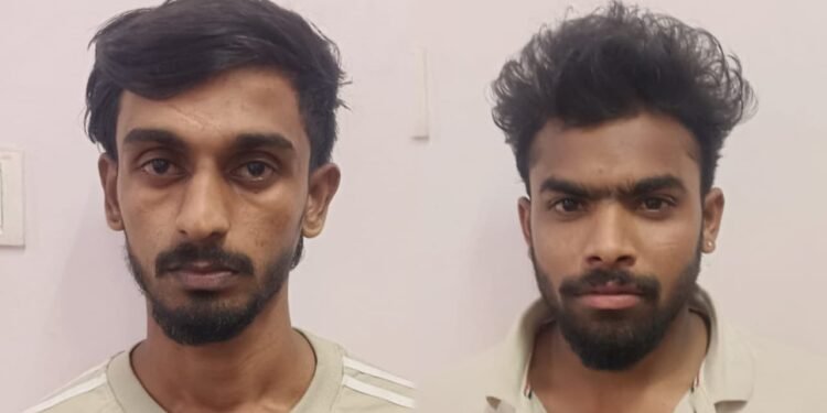 ಬಂಧಿತರನ್ನು ಶ್ರೀಜಿತ್ ಹಾಗೂ ಜುನೀಲ್ ಎಂದು ಗುರುತಿಸಲಾಗಿದೆ. ಇವರು ದ್ವಿಚಕ್ರ ವಾಹನದಲ್ಲಿ ಸಿ.ಎಂ.ಆರ್. ಕಾಲೇಜು ಸಮೀಪ ತೆರಳುತ್ತಿದ್ದ ವೇಳೆ ಪೊಲೀಸರು ದಾಳಿ ನಡೆಸಿ ಬಂಧಿಸಿದ್ದಾರೆ. ಕಾರ್ಯಾಚರಣೆ ವೇಳೆ ಆರೋಪಿಗಳಿಂದ ಸುಮಾರು 56 ಗ್ರಾಂ ಮಾದಕ ವಸ್ತುವನ್ನು ವಶಪಡಿಸಿಕೊಳ್ಳಲಾಗಿದ್ದು, ಇದರ ಮೌಲ್ಯ ಅಂದಾಜು 5 ಲಕ್ಷ ರೂಪಾಯಿ ಎಂದು ತಿಳಿದುಬಂದಿದೆ.