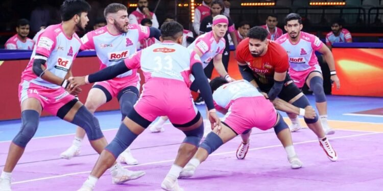 ನವದೆಹಲಿ : ಸಾಂಘಿಕ ಹೋರಾಟ ನೀಡಿದ ಬೆಂಗಳೂರು ಬುಲ್ಸ್‌ ತಂಡ ಪ್ರೊ ಕಬಡ್ಡಿ ಲೀಗ್‌ನ 12ನೇ ಆವೃತ್ತಿಯ ತನ್ನ 13ನೇ ಪಂದ್ಯದಲ್ಲಿ ಜೈಪುರ ಪಿಂಕ್‌ ಪ್ಯಾಂಥರ್ಸ್‌ ವಿರುದ್ಧ 21 ಅಂಕಗಳ ಭರ್ಜರಿ ಗೆಲುವು ಸಾಧಿಸಿತು. ಇದರೊಂದಿಗೆ ಟೂರ್ನಿಯಲ್ಲಿಏಳನೇ ಜಯ ದಾಖಲಿಸಿದ ಯೋಗೇಶ್‌ ಸಾರಥ್ಯದ ಬುಲ್ಸ್‌, ಒಟ್ಟು 14 ಅಂಕಗಳನ್ನು ಕಲೆಹಾಕಿ ಅಗ್ರ ಐದರಲ್ಲಿ ಸ್ಥಾನ ಉಳಿಸಿಕೊಂಡಿದೆ.