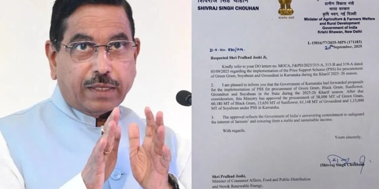 ಬೆಂಬಲ ಬೆಲೆಯಲ್ಲಿ ಐದು ಧಾನ್ಯಗಳ ಖರೀದಿಗೆ ಕೇಂದ್ರ ಕೃಷಿ ಸಚಿವರು ಅನುಮತಿ ನೀಡಿದ್ದು. 2025-26ನೇ ಸಾಲಿನ ಮುಂಗಾರಿನಲ್ಲಿ ಬೆಳೆದ ಹೆಸರು ಕಾಳು, ಉದ್ದಿನ ಕಾಳು, ನೆಲಗಡಲೆ(ಶೇಂಗಾ), ಸೋಯಾಬಿನ್‌ ಮತ್ತು ಸೂರ್ಯಕಾಂತಿ ಹೀಗೆ ಒಟ್ಟು 5 ಧಾನ್ಯಗಳನ್ನು ಕೇಂದ್ರದ ಬೆಂಬಲ ಬೆಲೆಯಲ್ಲಿ ಖರೀದಿಸುವಂತೆ ರಾಜ್ಯ ಸರ್ಕಾರಕ್ಕೆ ನಿರ್ದೇಶನ ನೀಡಿದೆ. ಈ ಕುರಿತು ಕೇಂದ್ರ ಕೃಷಿ ಸಚಿವರು ಆಹಾರ ಸಚಿವ ಪ್ರಹ್ಲಾದ್‌ ಜೋಶಿ ಅವರಿಗೆ ಖುದ್ದು ಪತ್ರ ಬರೆದು ಮಾಹಿತಿ ನೀಡಿದ್ದಾರೆ.