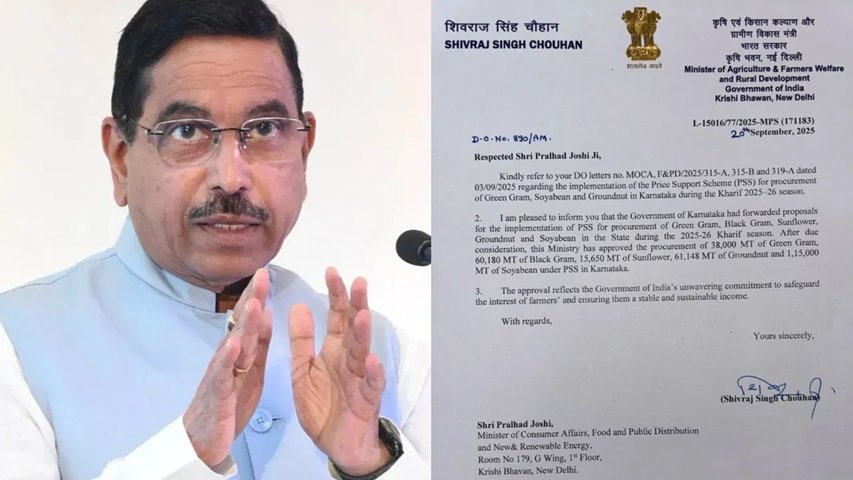 ಕೇಂದ್ರ ಸರ್ಕಾರ ಬೆಂಬಲ ಬೆಲೆ ಯೋಜನೆಯಡಿ 2025-26ನೇ ಸಾಲಿನಲ್ಲಿ ಕರ್ನಾಟಕದಿಂದ 38000 ಮೆಟ್ರಿಕ್‌ ಟನ್‌ ಹೆಸರು ಕಾಳು, 60,810 MT ಉದ್ದು, 15,650 MT ಸೂರ್ಯಕಾಂತಿ, 61,148 MT ಕಡಲೆಬೀಜ ಮತ್ತು 1,15,000 ಮೆಟ್ರಿಕ್‌ ಟನ್‌ ಸೋಯಾಬಿನ್ ಖರೀದಿಗೆ ಅನುಮತಿ ನೀಡಿದೆ ಎಂದು ಸಚಿವ ಪ್ರಲ್ಹಾದ್ ಜೋಶಿ ತಿಳಿಸಿದ್ದಾರೆ.