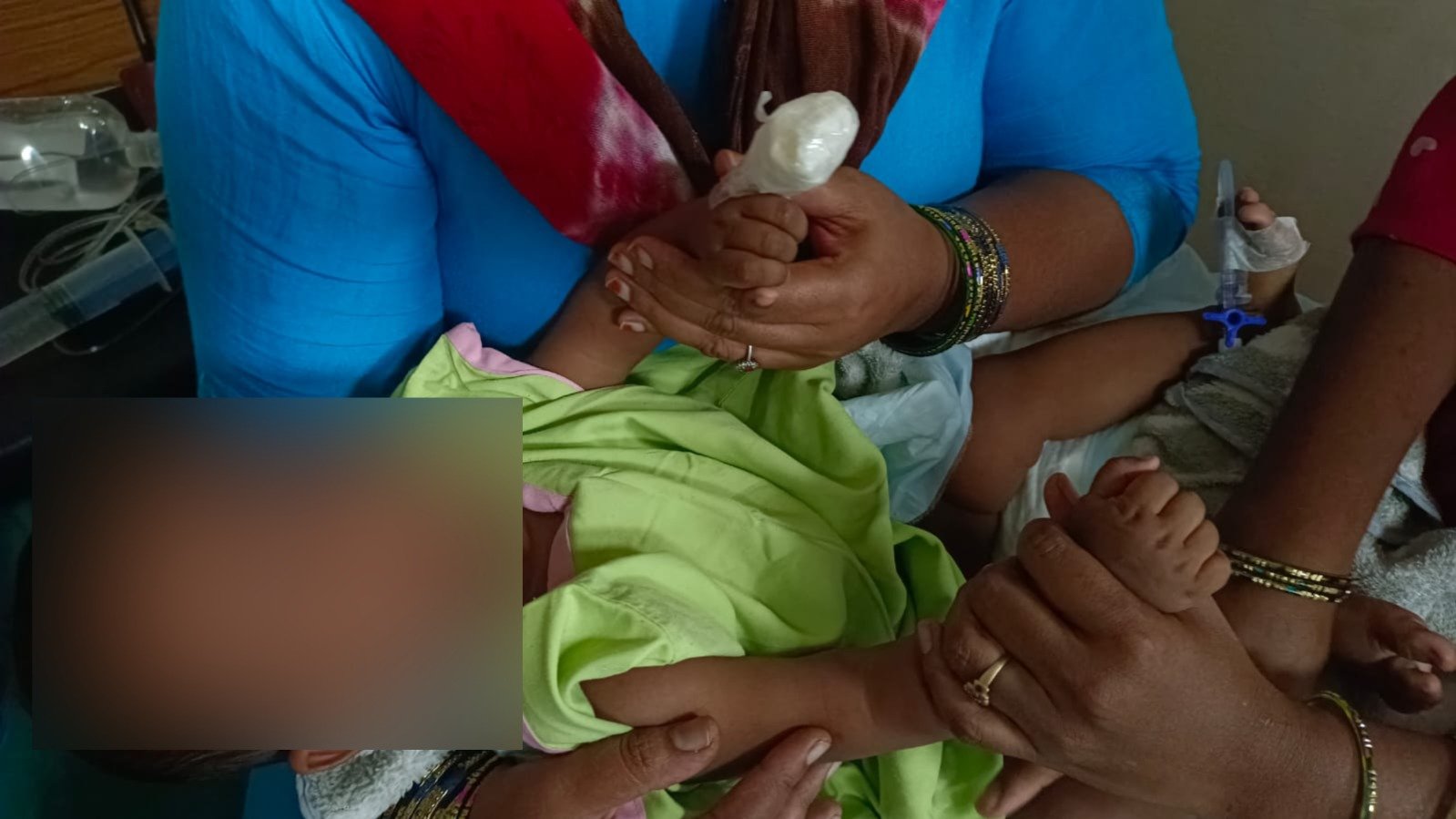 ಬಾಲಕುಮಾರ 6 ತಿಂಗಳ ಮಗುವಾಗಿದ್ದು, ಇದೇ ತಿಂಗಳ 19ರಂದು ಅನಾರೋಗ್ಯದ ಹಿನ್ನೆಲೆಯಲ್ಲಿ ಪೋಷಕರು ಮಗುವನ್ನು ಆಸ್ಪತ್ರೆಗೆ ದಾಖಲಿಸಿದ್ದರು. ಚಿಕಿತ್ಸೆ ಬಳಿಕ ನಿನ್ನೆ ಡಿಸ್ಚಾರ್ಜ್ ಮಾಡುವ ವೇಳೆ ಮಗುವಿನ ಕೈಗೆ ಬ್ಯಾಂಡೇಜ್ ಹಾಕಲಾಗಿತ್ತು. ಮನೆಗೆ ಕರೆದುಕೊಂಡು ಹೋಗಿ ಬ್ಯಾಂಡೇಜ್ ತೆಗೆಯುವಾಗ ಮಗುವಿನ ಕಿರುಬೆರಳು ಕಟ್ ಆಗಿರುವುದು ಕಂಡುಬಂದಿದೆ ಎಂದು ಪೋಷಕರು ಆರೋಪಿಸಿದ್ದಾರೆ.