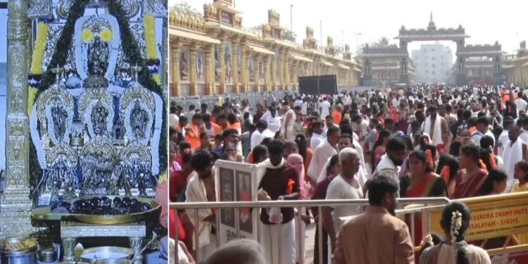 ರಾಯಚೂರು : ಕೇತುಗ್ರಸ್ಥ ಚಂದ್ರಗ್ರಹಣ ಇರುವ ಹಿನ್ನೆಲೆಯಲ್ಲಿ ಬಹುತೇಕ ದೇವಸ್ಥಾನಗಳನ್ನು ಬಂದ್ ಮಾಡಲಾಗಿದೆ. ಆದರೆ ರಾಯರು ಮಾತ್ರ ತಮ್ಮ ಭಕ್ತರಿಗೆ ದರ್ಶನ ನೀಡುತ್ತಿದ್ದಾರೆ. ಹೌದು.. ಕೇತುಗ್ರಸ್ಥ ಚಂದ್ರಗ್ರಹಣ (Lunar Eclipse) ನಡುವೆಯೂ ಮಂತ್ರಾಲಯ ಗುರುರಾಘವೇಂದ್ರ ಸ್ವಾಮಿ ಮಠದಲ್ಲಿ (Raghavendra Swamy Matha) ರಾಯರ ದರ್ಶನಕ್ಕೆ ಯಾವುದೇ ನಿರ್ಬಂಧ ಇಲ್ಲ ಎಂದು ಆಡಳಿತ ಮಂಡಳಿ ಹೇಳಿದೆ. ಈ ಹಿನ್ನೆಲೆಯಲ್ಲಿ ಬೆಳಗ್ಗೆಯಿಂದಲೇ ಭಕ್ತರು ಸರತಿ ಸಾಲಿನಲ್ಲಿ ನಿಂತು ರಾಯರ ದರ್ಶನ ಮಾಡುತ್ತಿದ್ದಾರೆ.