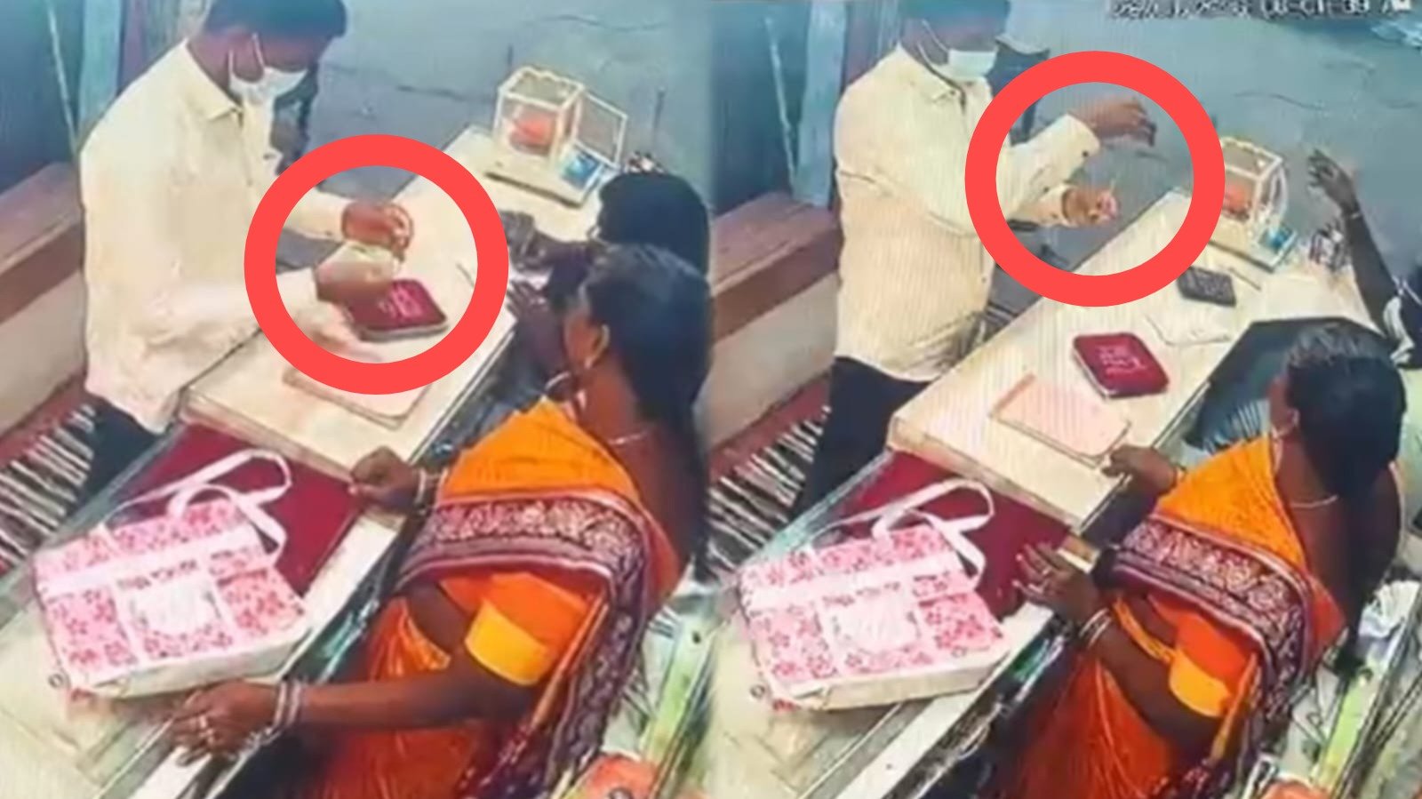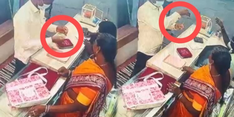 ಹಾಸನ: ಜ್ಯೂವೆಲ್ಲರಿ ಶಾಪ್ನಲ್ಲಿ ಖತರ್ನಾಕ್ ಕಳ್ಳನೊಬ್ಬ ಕೈಚಳಕ ತೋರಿದ್ದು, ಗ್ರಾಹಕರ ಸೋಗಿನಲ್ಲಿ ಬಂದು ಕದ್ದಿರುವ ಘಟನೆ ಹಾಸನ ಜಿ. ಬೇಲೂರು ಪಟ್ಟಣದ ಕನ್ನಿಕಾ ಜ್ಯೂವೆಲ್ಲರಿ ಶಾಪ್ನಲ್ಲಿ ನಡೆದಿದೆ