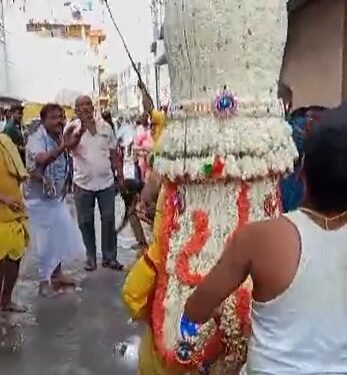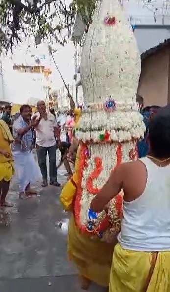 ಹೂವಿನ ಕರಗ ಹೊತ್ತು ನಡೆಯುವ ವೇಳೆ ಅಯ ತಪ್ಪಿ ಪೂಜಾರಿ ಕೆಳಗೆ ಬಿದ್ದಿರುವ ಘಟನೆ ನಡೆದಿದೆ. ಆದರೆ, ಕರಗ ಕೆಳಗೆ ಬೀಳದಂತೆ ನೋಡಿಕೊಂಡಿದ್ದಾರೆ.