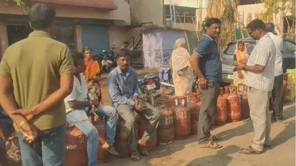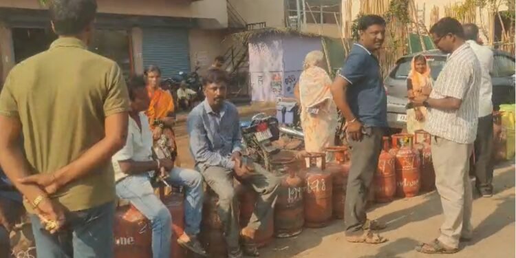 ಗದಗ ಜಿಲ್ಲೆಯ ನರಗುಂದ ಪಟ್ಟಣದಲ್ಲಿ ಇಂಡಿಯನ್ ಗ್ಯಾಸ್ಗಾಗಿ ಊಟ, ನಿದ್ದೆ ಬಿಟ್ಟು ನಸುಕಿನಿಂದಲೇ ಖಾಲಿ ಸಿಲಿಂಡರ್ ಸಮೇತ ಸಿದ್ದನಬಾವಿ ಓಣಿಯಲ್ಲಿರೋ ಇಂಡಿಯನ್ ಗ್ಯಾಸ್ ಏಜೆನ್ಸಿ ಮುಂದೆ ಕ್ಯೂ ನಿಂತಿದ್ದಾರೆ.