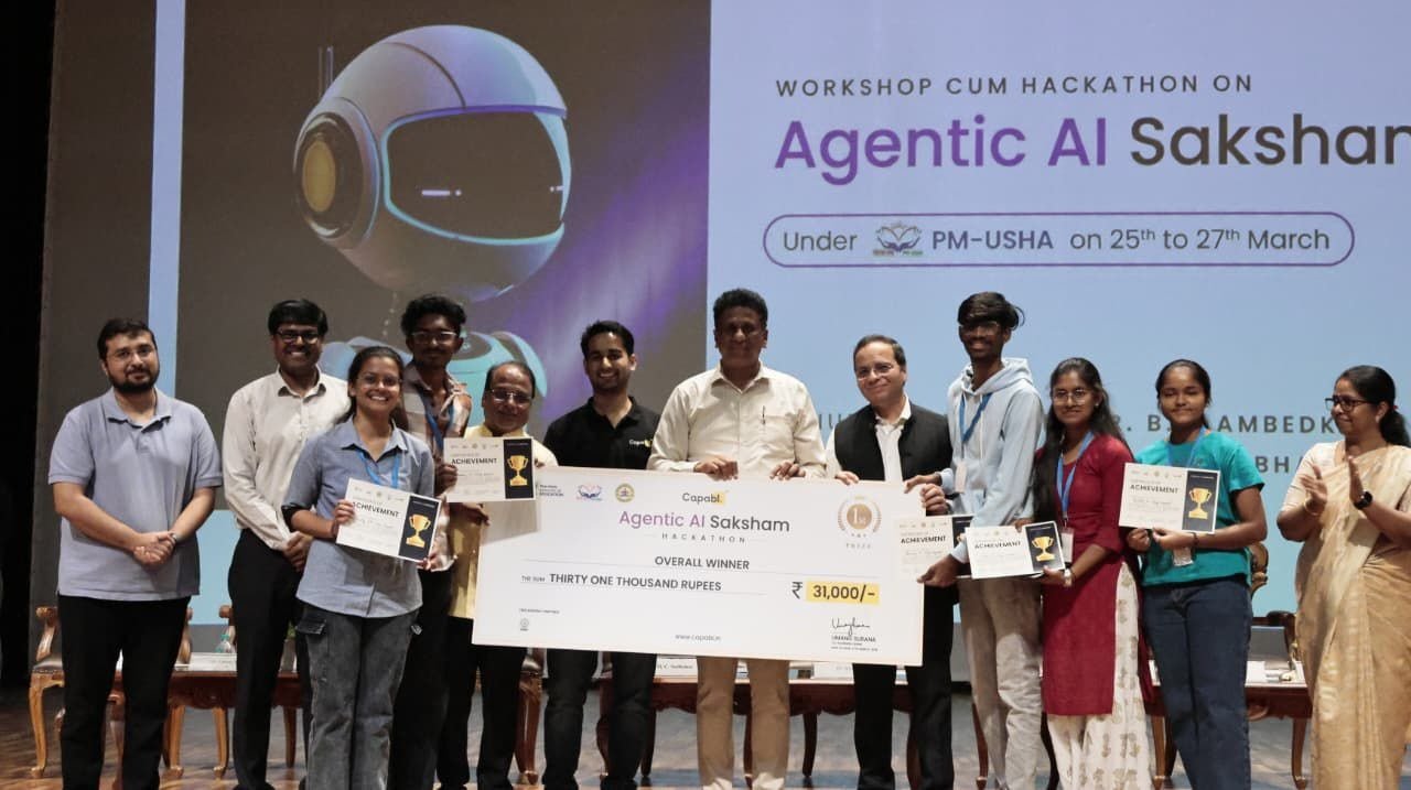ಏಜೆಂಟಿಕ್ ಎಐ ಸಕ್ಷಮ್ ಹ್ಯಾಕಾಥಾನ್ನಲ್ಲಿ 90 ಕ್ಕೂ ಅಧಿಕ ತಂಡಗಳು ನೊಂದಣಿಯಾಗಿದ್ದು ಬೆಂಗಳೂರು ನಗರ ವಿಶ್ವವಿದ್ಯಾಲಯ ವಿದ್ಯಾರ್ಥಿಗಳ ತಂಡ ಮೊದಲ ಸ್ಥಾನ ಪಡೆದಿದ್ದು ನಗದು ಬಹುಮಾನ ನೀಡಿ ಸನ್ಮಾನಿಸಲಾಯಿತು.