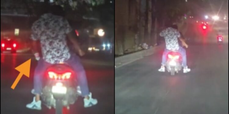 ಸ್ಕೂಟರ್ ಏರಿದ್ದ ಮೂವರು ಹೆಲ್ಮೆಟ್ ಹಾಕದೆ ಜಾಮ್ ಜೂಮ್ ಅಂತಾ ತ್ರಿಬ್ಬಲ್ ರೈಡಿಂಗ್ ಬೇರೆ ಮಾಡಿದ್ದು, ಹಿಂದೆ ಕುಳಿತಿದ್ದ ಪುಂಡ ಬಿಯರ್ ಹೀರುತ್ತಾ.. ಸ್ನ್ಯಾಕ್ಸ್ ಚಪ್ಪರಿಸುತ್ತಾ ʻಯಾರ ಹಂಗು ನಮಗೇನುʼ ಅನ್ನೋ ಥರ ರೈಡಿಂಗ್ನ್ನೇ ಬಾರ್ ಥರ ಬದಲಾಯಿಸ್ಕೊಂಡಿರುವ ವಿಡಿಯೋ ವೈರಲ್ ಆಗಿದೆ.