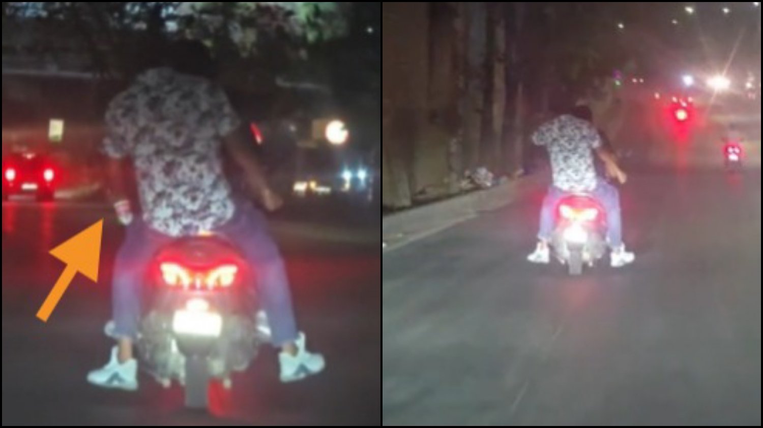 ನಾಗರಭಾವಿ ಕಡೆಯಿಂದ ನಾಯಂಡಹಳ್ಳಿ ಕಡೆಗೆ ಹೋಗುವಾಗ ಪುಂಡರು ಎಣ್ಣೆ ಹೊಡೆದಿದ್ದು, ಹಿಂಬದಿ ಕಾರಲ್ಲಿದ್ದವರು ಪುಂಡರ ಹುಚ್ಚಾಟದ ವಿಡಿಯೋ ಮಾಡಿದ್ದಾರೆ. KA 05 LL 0288 ನಂಬರ್ನ ಸ್ಕೂಟರ್ನ್ನ ವಿಡಿಯೋದಲ್ಲಿ ಸೆರೆ ಹಿಡಿದಿದ್ದಾರೆ.