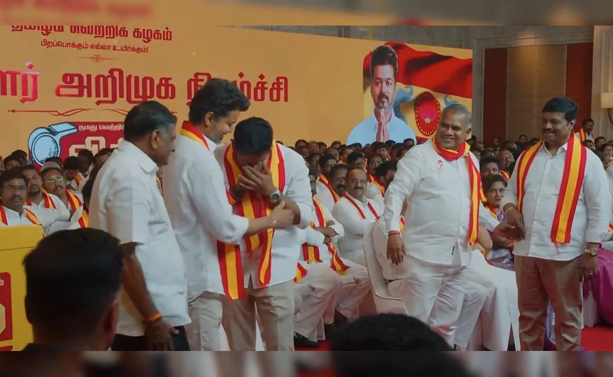 ಚೆನ್ನೈ: ತಮಿಳಗ ವೆಟ್ರಿ ಕಳಗಂ (TVK) ಪಕ್ಷದ ಸಂಸ್ಥಾಪಕ ಹಾಗೂ ನಟ ವಿಜಯ್ ಅವರು ತಮಿಳುನಾಡು ರಾಜಕೀಯದಲ್ಲಿ ಹೊಸ ಅಲೆ ಎಬ್ಬಿಸಿದ್ದಾರೆ. ಇದೀಗ ತಮ್ಮ ಪಕ್ಷದ ಅಭ್ಯರ್ಥಿಗಳ ಪರಿಚಯಾತ್ಮಕ ಕಾರ್ಯಕ್ರಮದಲ್ಲಿ, ವಿಲ್ಲಿವಾಕ್ಕಂ ಕ್ಷೇತ್ರದ ಅಭ್ಯರ್ಥಿ ಶಬರಿನಾಥನ್ ಅವರ ಹೆಸರನ್ನು ವಿಜಯ್ ಘೋಷಿಸಿದಾಗ, ವೇದಿಕೆಯ ಮೇಲೆ ಕಂಡುಬಂದ ದೃಶ್ಯಗಳು ಈಗ ತಮಿಳುನಾಡಿನಾದ್ಯಂತ ಸಂಚಲನ ಮೂಡಿಸಿವೆ.