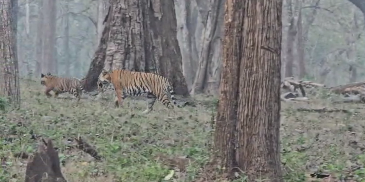 ಮೈಸೂರು: ನಾಗರಹೊಳೆ ಸಫಾರಿಯಲ್ಲಿ ತಾಯಿ ಹುಲಿ ಜೊತೆ 3 ಮರಿಗಳ ದರ್ಶನವಾಗಿದ್ದು, ಸಫಾರಿಗರು ಸಂತಸ ಪಟ್ಟಿದ್ದಾರೆ.