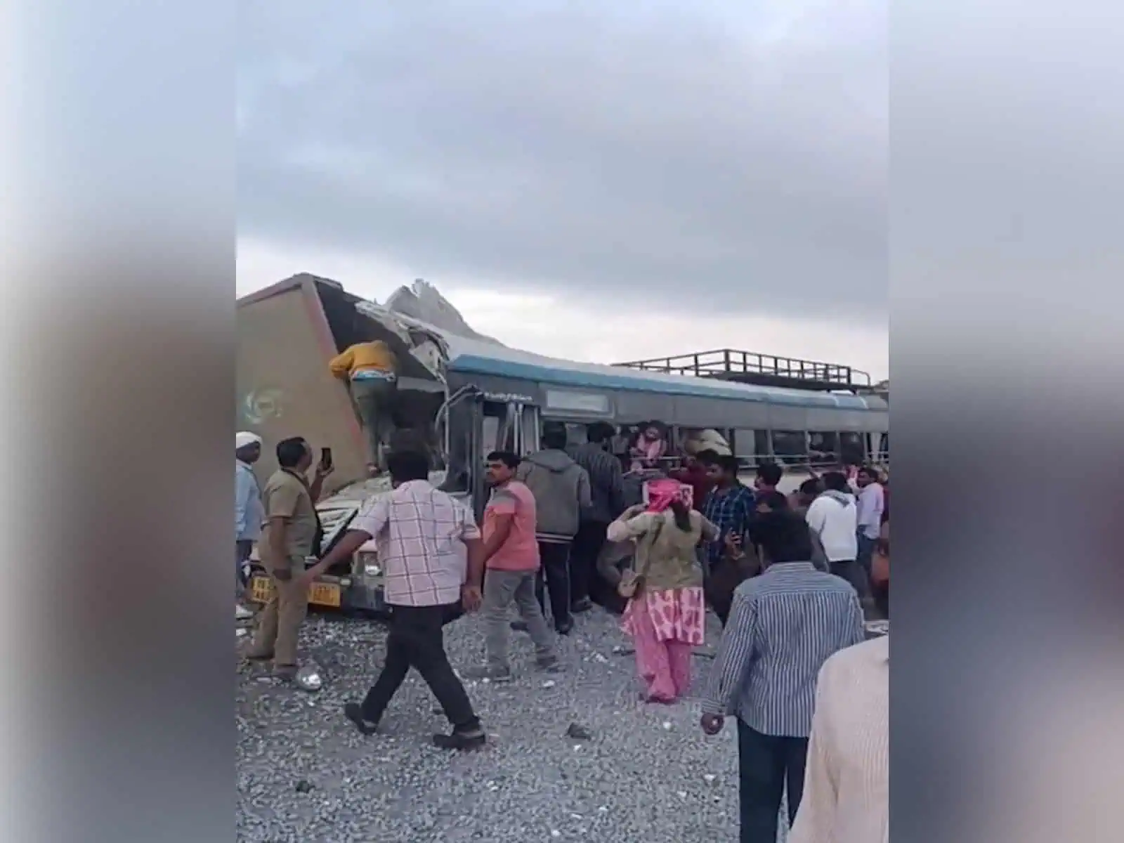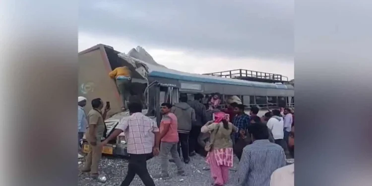ರಂಗಾರೆಡ್ಡಿ ಜಿಲ್ಲೆಯ ಚೆವೆಲ್ಲಾದ ಮಿರ್ಜಾಗುಡ ಗ್ರಾಮದ ಬಳಿ ದುರಂತ ಸಂಭವಿಸಿದ್ದು, ಬಸ್ನಲ್ಲಿ ಸುಮಾರು 70 ಪ್ರಯಾಣಿಕರು ಪ್ರಯಾಣಿಸುತ್ತಿದ್ದರು. ಟಿಪ್ಪರ್ ಪಲ್ಟಿಯಾದ ಪರಿಣಾಮ ಜಲ್ಲಿಕಲ್ಲಿನ ಕೆಳಗೆ ಪ್ರಯಾಣಿಕರು ಸಿಲುಕಿಕೊಂಡಿದ್ದರು. ಘಟನೆಯಲ್ಲಿ 20 ಮಂದಿ ಮೃತಪಟ್ಟಿದ್ದಾರೆ. ಗಾಯಾಳುಗಳನ್ನು ತಕ್ಷಣ ಚಿಕಿತ್ಸೆಗಾಗಿ ಚೆವೆಲ್ಲಾ ಸರ್ಕಾರಿ ಆಸ್ಪತ್ರೆಗೆ ದಾಖಲಿಸಲಾಗಿದೆ. ಅಪಘಾತ ಸಂಬಂಧ ಪೊಲೀಸರು ಪ್ರಕರಣ ದಾಖಲಿಸಿಕೊಂಡು ತನಿಖೆ ಆರಂಭಿಸಿದ್ದಾರೆ. ಘಟನಾ ಸ್ಥಳದಲ್ಲಿ ಜೆಸಿಬಿ ಮೂಲಕ ಕಾರ್ಯಾಚರಣೆ ನಡೆಸಲಾಗುತ್ತಿದೆ.