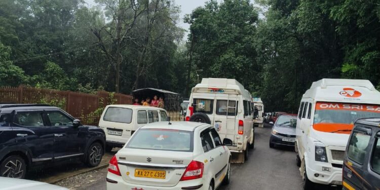 ವೀಕೆಂಡ್ ಮೂಡಿನಲ್ಲಿದ್ದ ಪ್ರವಾಸಿಗರು ಜೋಗಕ್ಕೆ ಲಗ್ಗೆ ಇಡುತ್ತಿದ್ದಾರೆ. ಇದರಿಂದ ಸಂಚಾರ ದಟ್ಟನೆ ಉಂಟಾಗಿದ್ದು, ನಿನ್ನೆ ಸಂಜೆ ವೇಳೆ ಟ್ರಾಫಿಕ್ ನಿಯಂತ್ರಿಸಲು ಪೊಲೀಸರು ಮತ್ತು ಪ್ರಾದಿಕಾರದ ಸಿಬ್ಬಂದಿಗಳಿಂದ ಹರಸಾಹಸ ಪಟ್ಟ ದೃಶ್ಯ ಕಂಡು ಬಂತು. ಜೋಗದಲ್ಲಿ ನೂರಾರು ಕೋಟಿಯ ಅಭಿವೃದ್ಧಿಯ ಸಾಗುತ್ತಿರುವ ಹಿನ್ನಲೇ ಪಾರ್ಕಿಂಗ್ ಗೂ ಸಮಸ್ಯೆ ಸೃಷ್ಟಿಯಾಗಿದೆ. ಇದರಿಂದ ಪ್ರವಾಸಿಗರಲ್ಲೂ ಬೇಸರ ಮೂಡಿದೆ.
