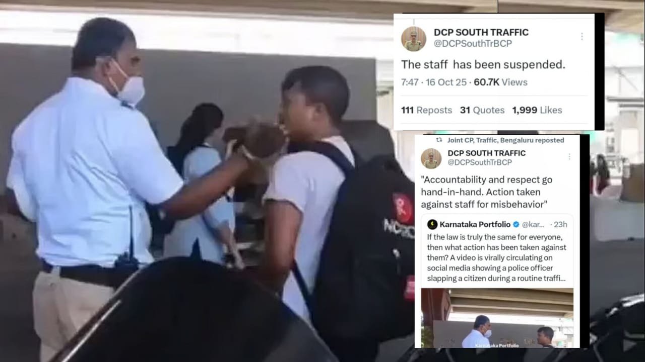 ಇದರ ಬೆನ್ನಲ್ಲೇ ಪ್ರತಿಕ್ರಿಯೆ ನೀಡಿರುವ ಸಂಚಾರಿ ಡಿಸಿಪಿ, ಸವಾರನಿಗೆ ಕ್ಷುಲ್ಲಕ ಕಾರಣಕ್ಕೆ ಕಪಾಳಮೋಕ್ಷ ಮಾಡಿದ ಪೊಲೀಸ್ ವಿರುದ್ಧ ಕ್ರಮ ಕೈಗೊಳ್ಳಲಾಗಿದೆ ಎಂದು ಹೇಳಿದ್ದರೆ. ಈ ಘಟನೆ ಬೆಂಗಳೂರಿನ ಸಿಲ್ಕ್ ಬೋರ್ಡ್ ಜಂಕ್ಷನ್ ನಲ್ಲಿ ಈ ಘಟನೆ ನಡೆದಿದೆ ಎನ್ನಲಾಗುತ್ತಿದ್ದು, ವಿಡಿಯೋ ಸಾಮಾಜಿಕ ಜಾಲತಾಣಗಳಲ್ಲಿ ವೈರಲ್ ಆಗಿದೆ.