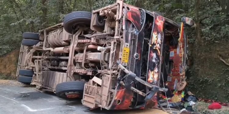 ಶಿರಸಿ : ವೈಕುಂಠ ಏಕಾದಶಿಯಂದೇ ಶಿರಸಿಯಲ್ಲಿ ದುರಂತ ಸಂಭವಿಸಿದೆ. ದಾವಣಗೆರೆಯಿಂದ ಪ್ರವಾಸಕ್ಕೆ ಬಂದಿದ್ದ ವಿದ್ಯಾರ್ಥಿಗಳ ಬಸ್ ಅಪಘಾತಕ್ಕೀಡಾಗಿ, 10 ವಿದ್ಯಾರ್ಥಿಗಳು ತೀವ್ರವಾಗಿ ಗಾಯಗೊಂಡಿರುವ ಘಟನೆ ಶಿರಸಿಯ ಮತ್ತಿಘಟ್ಟದಲ್ಲಿ ನಡೆದಿದೆ.