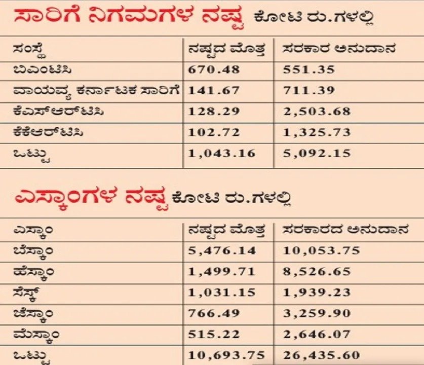 ಹೆಚ್ಚಿನ ಸಿಬ್ಬಂದಿ ವೆಚ್ಚ ಹಾಗೂ ಗ್ಯಾರಂಟಿ ಯೋಜನೆಗಳಿಗೆ ಸರಕಾರದಿಂದ ಪಾವತಿಯಾಗಬೇಕಾದ ಹಣದ ವಿಳಂಬವೂ ನಷ್ಟ ಹೆಚ್ಚಳಕ್ಕೆ ಕಾರಣವಾಗಿದೆ.