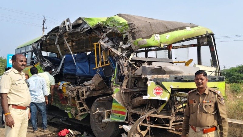 ಬಾಗಲಕೋಟೆಯಲ್ಲಿ ಸಾರಿಗೆ ಬಸ್‌-ಲಾರಿ ಮುಖಾಮುಖಿ ಡಿಕ್ಕಿ | ಚಾಲಕನ ಕಾಲು ಕಟ್‌