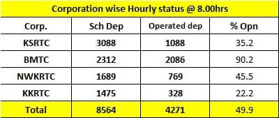 ಈ ಎಲ್ಲ ಬೆಳವಣಿಗೆಯ ಹೊರತಾಗಿಯೂ ತಮ್ಮ ನಿರ್ಧಾರದಿಂದ ಹಿಂದೆ ಸರಿಯದ ಕೆಎಸ್ಆರ್ಟಿಸಿ ಕಾರ್ಮಿಕ ಸಂಘಟನೆಗಳ ಜಂಟಿ ಕ್ರಿಯಾ ಸಮಿತಿ ಇಂದಿನಿಂದ (ಆ.5) ಮುಷ್ಕರಕ್ಕಿಳಿದಿದೆ. ಇದರಿಂದ ರಾಜ್ಯಾದ್ಯಂತ ಬಸ್ಗಳ ಸೇವೆಯಲ್ಲಿ ವ್ಯತ್ಯುಯವಾಗಿ 1 ಕೋಟಿಗೂ ಹೆಚ್ಚು ಪ್ರಯಾಣಿಕರು ಪರದಾಡುವ ಆತಂಕ ಎದುರಾಗಿದೆ.