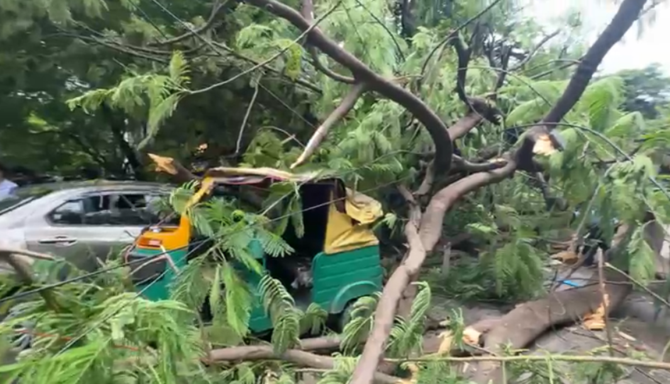 ರನ್ನಿಂಗ್‌ನಲ್ಲಿದ್ದ ಆಟೋ ಮೇಲೆ ಬಿದ್ದ ಮರ | ಚಾಲಕ ಗಂಭೀರ