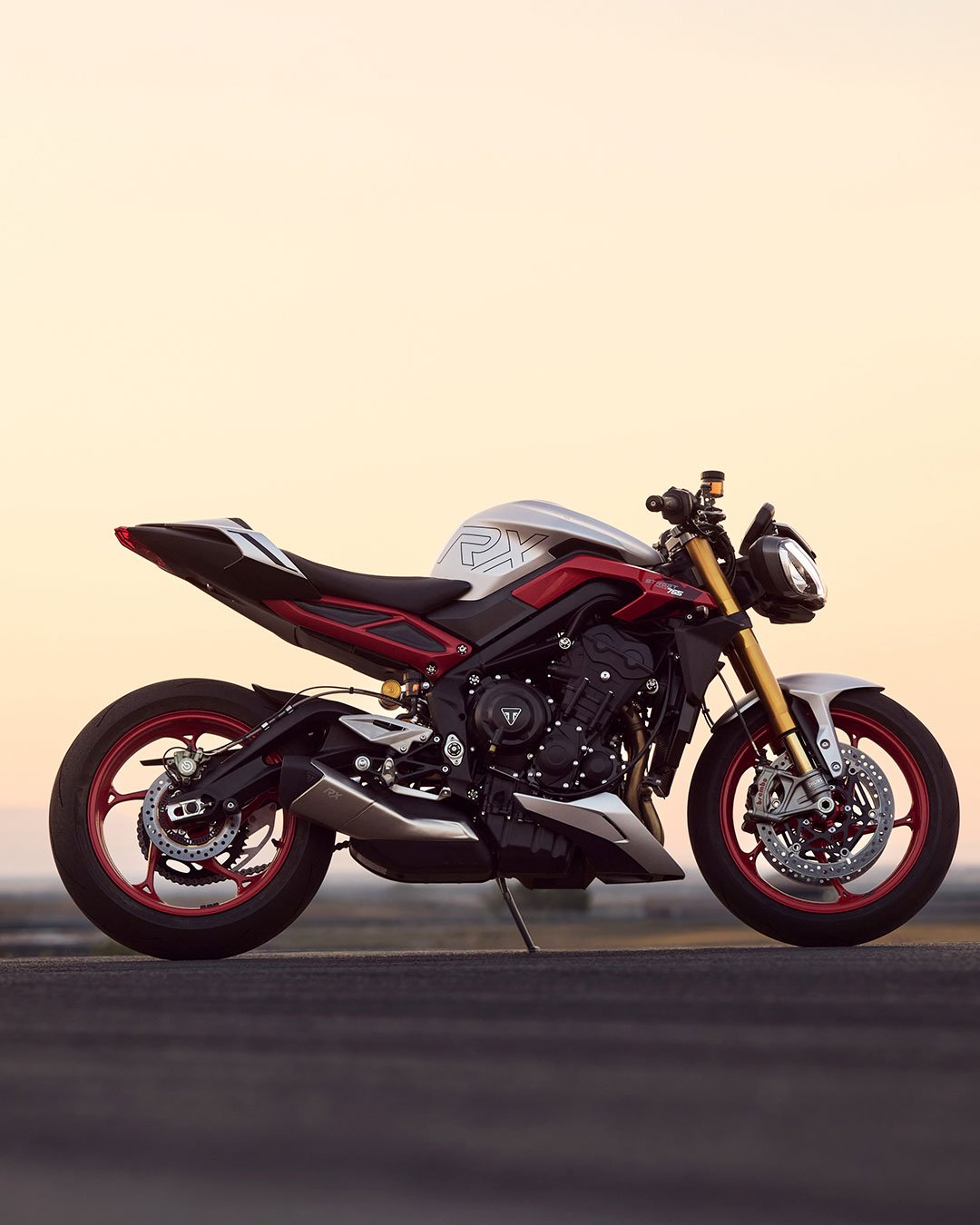 - ಸ್ಟ್ರೀಟ್ ಟ್ರಿಪಲ್ 765 RX: ಈ ಮಾಡೆಲ್ ಮ್ಯಾಟ್ ಅಲ್ಯೂಮಿನಿಯಂ ಸಿಲ್ವರ್ ಬಣ್ಣದಲ್ಲಿದ್ದು, ಡಯಾಬ್ಲೊ ರೆಡ್ ಸಬ್ಫ್ರೇಮ್ ಮತ್ತು ವೀಲ್ಸ್ ಹೊಂದಿದೆ. RX ಬ್ರ್ಯಾಂಡಿಂಗ್ ಮತ್ತು ವಿಶೇಷ ಸೀಟ್ ಸ್ಪೋರ್ಟಿ ಲುಕ್ ನೀಡುತ್ತದೆ.