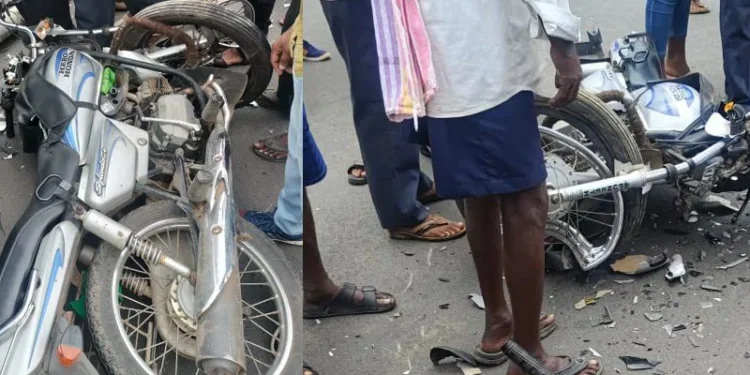 ಚಿಕ್ಕಬಳ್ಳಾಪುರ (Chikkaballapura) ಜಿಲ್ಲೆಯ ಮಂಚೇನಹಳ್ಳಿ ತಾಲೂಕಿನ ಕನಗಾನಕೊಪ್ಪ ಗ್ರಾಮದ ಹತ್ತಿರ ಈ ಘಟನೆ ನಡೆದಿದೆ. ಘಟನೆಯಲ್ಲಿ ಹೊನ್ನಪ್ಪನಹಳ್ಳಿ ಗ್ರಾಮದ ಒಬಳೇಷ್ (45) ಹಾಗೂ ಮಂಚೇನಹಳ್ಳಿಯ ಮೆಕ್ಯಾನಿಕ್ ಅಜ್ಗರ್ (35) ಸಾವನ್ನಪ್ಪಿದ್ದಾರೆ. ಎರಡು ಬೈಕ್ ಗಳು ಪರಸ್ಪರ ಡಿಕ್ಕಿಯಾದ ಪರಿಣಾಮ ಈ ಘಟನೆ ನಡೆದಿದೆ.