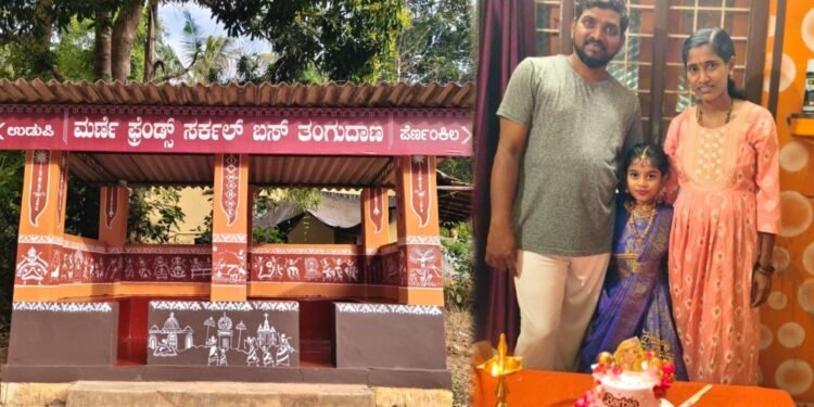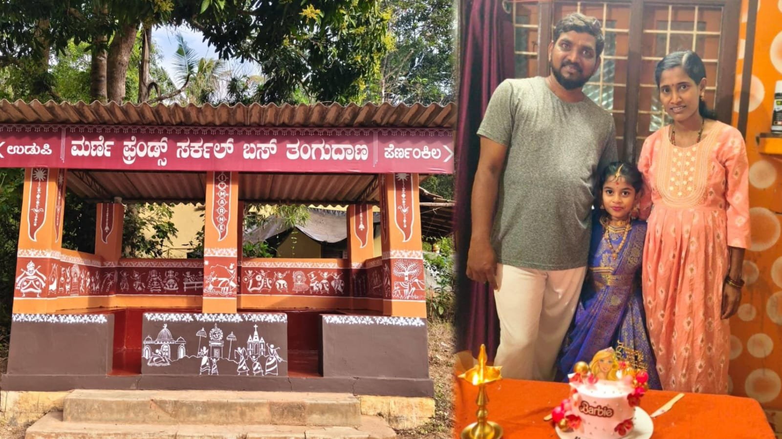 ಉಡುಪಿ ಜಿಲ್ಲಾ ರಾಜ್ಯೋತ್ಸವ ಪ್ರಶಸ್ತಿ ಪುರಸ್ಕೃತ ಕಲಾವಿದ ಮಹೇಶ್ ಮರ್ಣೆ ಅವರು ತಮ್ಮ ಪುತ್ರಿ ಅನಘ ಮರ್ಣೆಯ ಆರನೇಯ ಹುಟ್ಟುಹಬ್ಬದ ಹಿನ್ನೆಲೆಯಲ್ಲಿ, ಪಾಳು ಬಿದ್ದ ಬಸ್ ತಂಗುದಾಣವನ್ನು ಸ್ವತಃ ಸ್ವಚ್ಛಗೊಳಿಸಿ ಮೂರು ದಿನಗಳ ಪರಿಶ್ರಮದಿಂದ, ತನ್ನ ವಿದ್ಯಾರ್ಥಿ ಕಲಾವಿದರಾದ ಶ್ರೇಯಸ್ ಮತ್ತು ಸಂಜನಾ ಅವರ ಜತೆ ಸೇರಿಸಿಕೊಂಡು ಮರ್ಣೆಯ ಬಸ್ ತಂಗುದಾಣಕ್ಕೆ ವರ್ಲಿ ಬಣ್ಣಗಳ ಚಿತ್ತಾರ ಬಿಡಿಸಿದ್ದಾರೆ.