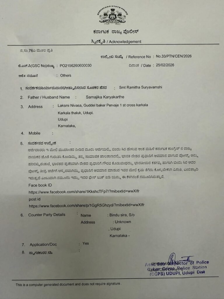 ಉಡುಪಿ | ಪ್ರಧಾನಿ ಮೋದಿ ವಿರುದ್ಧ ಅವಹೇಳನಕಾರಿ ಪೋಸ್ಟ್ – ಸೈಬರ್ ಠಾಣೆಯಲ್ಲಿ ಪ್ರಕರಣ ದಾಖಲು!