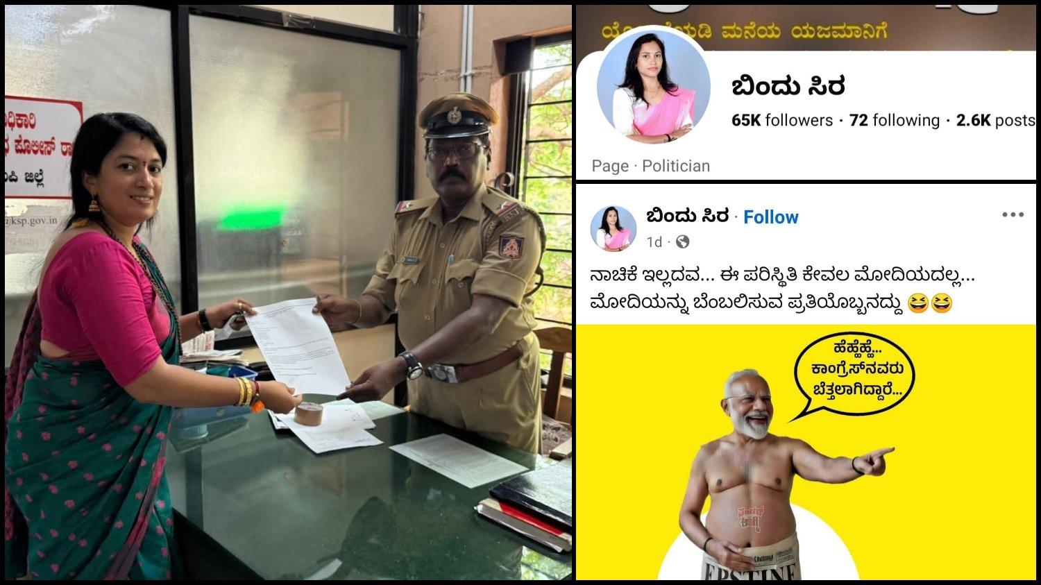 “ಬಿಂದು ಸಿರ ಎಂಬ ಮಹಿಳೆ ಕರ್ನಾಟಕ ಕಾಂಗ್ರೆಸ್‌ನ ರಾಜ್ಯ ನಾಯಕರ ಜೊತೆ ಗುರುತಿಸಿಕೊಂಡಿದ್ದು, ತನ್ನ ಸಾಮಾಜಿಕ ಜಾಲತಾಣದಲ್ಲಿ ಭಾರತ ದೇಶದ ಪ್ರಧಾನಿಗೆ ಅವಮಾನವಾಗುವ ಪೋಸ್ಟ್ ಅನ್ನು ಹರಿಬಿಟ್ಟಿದ್ದಾರೆ. ಭಾರತದ ಪ್ರಜೆಯಾಗಿ ದೇಶದ ಪ್ರಧಾನಿಗೆ ಗೌರವ ಕೊಡುವಂಥದ್ದು ಭಾರತೀಯರ ಕರ್ತವ್ಯ, ಹಾಗಾಗಿ ಬಿಂದು ಸಿರ ಅವರ ಪೋಸ್ಟ್ ತೀವ್ರ ಚರ್ಚೆಗೆ ಆಸ್ಪದವಾಗಿದ್ದು, ಪ್ರಧಾನಿಗೆ ಅವಮಾನ ಮಾಡಿದ ಇವರ ಮೇಲೆ ಕ್ರಮ ತೆಗೆದು ಕೊಳ್ಳಬೇಕಾಗಿ ವಿನಂತಿ” ಎಂದು ದೂರಿನಲ್ಲಿ ತಿಳಿಸಿದ್ದಾರೆ. ಈ ಸಂಬಂಧ ಪ್ರಕರಣ ದಾಖಲಸಿಕೊಂಡಿರುವ ಸೈಬರ್ ಠಾಣೆ ಪೊಲೀಸರು ತನಿಖೆ ಕೈಗೊಂಡಿದ್ದರೆ.