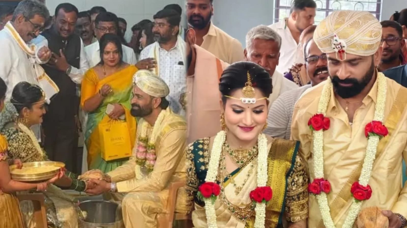 ಮಂಜು ‘ಉಗ್ರಂ’ ಸಿನಿಮಾದಿಂದ ಖ್ಯಾತಿ ಪಡೆದಿದ್ದು ಹಲವು ಸಿನಿಮಾಗಳಲ್ಲಿ ನಟಿಸುವ ಮೂಲಕ ಖ್ಯಾತಿ ಪಡೆದಿದ್ದಾರೆ. ಕಿರಿಕ್ ಪಾರ್ಟಿ, ಹೀರೋ, ಕಿಡಿ, ಕಿರೀಟ, ರಾನಿ, ದೂರದರ್ಶನ ಸಿನಿಮಾಗಳಲ್ಲಿ ನಟಿಸಿದ್ದರು. ಅಷ್ಟೇ ಅಲ್ಲದೆ ಮ್ಯಾಕ್ಸ್ ಸಿನಿಮಾದಲ್ಲಿ ಉಗ್ರಂ ಮಂಜು ಸೂಪರ್ ಆಗಿ ಆ್ಯಕ್ಟ್ ಮಾಡಿದ್ದರು. ಸುದೀಪ್ ಜೊತೆಗೆಯೇ ಖಡಕ್ ಆಗಿಯೇ ಡೈಲಾಗ್ ಹೊಡೆದು ಮಿಂಚಿದ್ದರು. ಬೆಂಗಳೂರಿನಲ್ಲಿ ಅದ್ದೂರಿಯಾಗಿ ರಿಸೆಪ್ಶನ್ ನಡೆಯಲಿದೆ. ಮದುವೆಯ ಶುಭಾರಂಭಕ್ಕೆ ಸಂಕೇತವಾದ ಅರಿಶಿಣ ಶಾಸ್ತ್ರದಲ್ಲಿ ಸಂಪ್ರದಾಯಿಕ ವೇಸ್ಟಿ ಧರಿಸಿ ಸಿಂಪಲ್ ಉಡುಗೆಯಲ್ಲಿ ಕಾಣಿಸಿಕೊಂಡಿದ್ದರು.