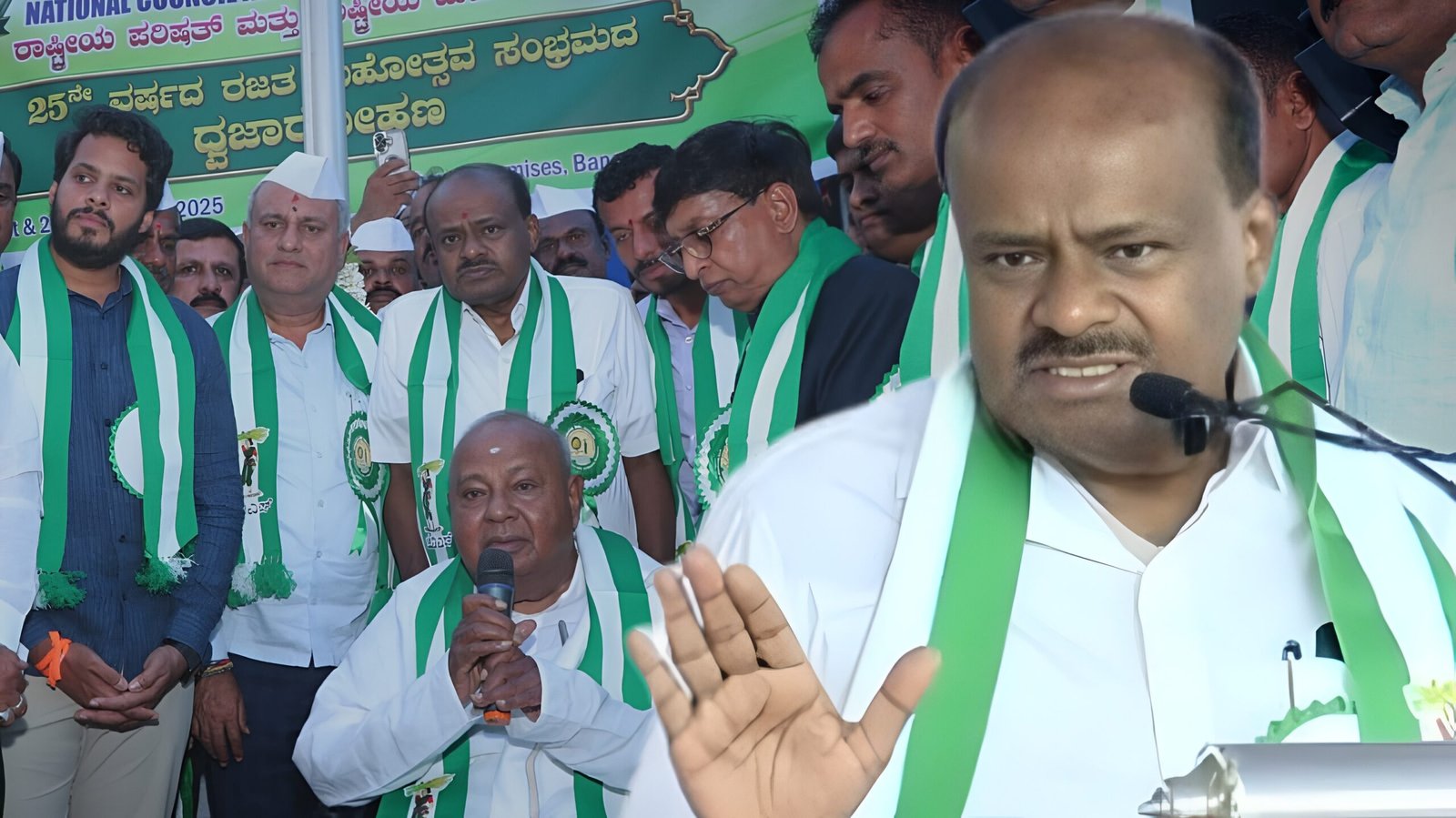 ಜೆಡಿಎಸ್ ರಜತಮಹೋತ್ಸವದ ಅಂಗವಾಗಿ ಇಂದು ಬೆಂಗಳೂರಿನಲ್ಲಿರುವ ಪಕ್ಷದ ಕಚೇರಿ ಎದುರು ನಡೆದ ಸಮಾವೇಶದಲ್ಲಿ ಪಾಲ್ಗೊಂಡು ಮಾತನಾಡಿದ ಅವರು, ರಾಜ್ಯದ ಎಲ್ಲಾ ಜಿಲ್ಲೆಗಳಲ್ಲಿ ಪಕ್ಷದ ಸಂಘಟನೆ ಆಗಬೇಕು. ಜೆಡಿಎಸ್ ಅನ್ನ ಅಧಿಕಾರಕ್ಕೆ ತರಬೇಕು ಅನ್ನೋದಕ್ಕಿಂತ ಇವತ್ತು ರಾಜ್ಯದ ರಾಜಕೀಯ ಹೇಗೆ ನಡೆಯುತ್ತಿದೆ ಅನ್ನೋದ್ರ ಬಗ್ಗೆ ಯೋಚಿಸಬೇಕು. ಈ ರಾಜ್ಯ ಸಂಪದ್ಭರಿತ ರಾಜ್ಯ. ಕಳೆದ 25-30 ವರ್ಷಗಳಲ್ಲಿ ದೇಶದ ಕೊಡುಗೆಯಲ್ಲಿ ಕರ್ನಾಟಕ 2ನೇ ಸ್ಥಾನದಲ್ಲಿತ್ತು. ಆದ್ರೀಗ ರಾಜ್ಯದ ಸಾಲದ ಪ್ರಮಾಣ 7.5 ಲಕ್ಷ ಕೋಟಿ ರೂ. ಆಗಿದೆ.