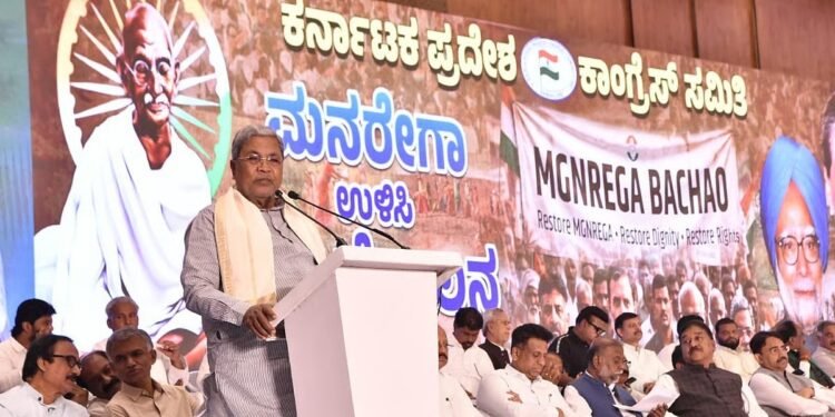 ಚಿಕ್ಕಬಳ್ಳಾಪುರ : ಇಡೀ ದೇಶದ್ಯಾಂತ ಮನರೇಗಾ ಉಳಿಸಿ ಅಭಿಯಾನ ಪ್ರಾರಂಭವಾಗಿದ್ದು, ಕರ್ನಾಟಕದಲ್ಲೂ ಕೂಡ ಇದೀಗ ಆರಂಭವಾಗುತ್ತಿದೆ. ಚಳಿಗಾಲದ ಅಧಿವೇಶನದಲ್ಲಿ ಕೇಂದ್ರ ಸರ್ಕಾರ ಮನರೇಗಾ ಯೋಜನೆ ರದ್ದು ಮಾಡಿ ಜಿ ರಾಮ್ ಜಿ ಕಾಯ್ದೆಯನ್ನ ಜಾರಿಗೆ ಮಾಡಿದೆ, ಇದನ್ನ ತರೋ ಅಗತ್ಯ ಇರಲಿಲ್ಲ ಎಂದು ಸಿಎಂ ಸಿದ್ದರಾಮಯ್ಯ ಹೇಳಿದ್ದಾರೆ.