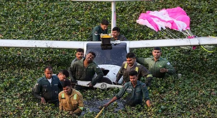 ಬಮ್ರೌಲಿ ವಾಯುನೆಲೆಯಿಂದ ತನ್ನ ದಿನನಿತ್ಯದ ತರಬೇತಿ ಹಾರಾಟವನ್ನು ಆರಂಭಿಸಿದ್ದ ಈ ಎರಡು ಆಸನಗಳ ಮೈಕ್ರೋಲೈಟ್ ವಿಮಾನವು ಮಧ್ಯಾಹ್ನ 12:15ರ ಸುಮಾರಿಗೆ ತಾಂತ್ರಿಕ ಸಮಸ್ಯೆಯನ್ನು ಎದುರಿಸಿತು. ಇದರಿಂದಾಗಿ ಪೈಲಟ್ಗಳು ವಿಮಾನವನ್ನು ಜನವಸತಿ ಇಲ್ಲದ ಜೌಗು ಪ್ರದೇಶದಲ್ಲಿ ಇಳಿಸಲು ಪ್ರಯತ್ನಿಸಿದರು. ಸೊಂಟದವರೆಗೆ ಕೆಸರು ಮತ್ತು ಜಲಸಸ್ಯಗಳಿಂದ ತುಂಬಿದ್ದ ಈ ಜೌಗು ಪ್ರದೇಶಕ್ಕೆ ವಿಮಾನವು ಅಪ್ಪಳಿಸಿದಾಗ ದೊಡ್ಡ ಶಬ್ದ ಕೇಳಿಸಿತು. ತಕ್ಷಣವೇ ಕಾರ್ಯಪ್ರವೃತ್ತರಾದ ಹತ್ತಿರದ ಗ್ರಾಮಸ್ಥರು ವಿಮಾನದ ಬಳಿಗೆ ಧಾವಿಸಿ, ಕೆಸರಿನಲ್ಲಿ ಸಿಲುಕಿದ್ದ ಪೈಲಟ್ಗಳನ್ನು ಹೊರಕ್ಕೆ ಎಳೆದು ದಡಕ್ಕೆ ಸೇರಿಸಿದರು.