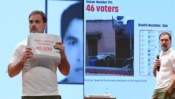ಮಹದೇವಪುರದಲ್ಲಿ ನಕಲಿ ವಿಳಾಸಗಳನ್ನು ಹೊಂದಿರುವ ‘40,009’ ಮತದಾರರಿದ್ದಾರೆ. ‘ಮನೆ ಸಂಖ್ಯೆ 0’ ಎಂಬ ಅಡ್ರೆಸ್ ಇರುವ ಹಲವರು ನೋಂದಾಯಿಸಿಕೊಂಡಿದ್ದಾರೆ. ಒಂದು ಪ್ರಕರಣದಲ್ಲಿ, 46 ಮತದಾರರು ಒಂದೇ ರೂಮಿನ ವಿಳಾಸದ ಅಡಿಯಲ್ಲಿ ನೋಂದಾಯಿಸಲ್ಪಟ್ಟಿದ್ದಾರೆ. ಆದರೆ ಆ ಸ್ಥಳಕ್ಕೆ ಭೇಟಿ ನೀಡಿದಾಗ, ಯಾರೂ ಅಲ್ಲಿ ವಾಸಿಸುತ್ತಿಲ್ಲ ಎಂದು ಗೊತ್ತಾಯಿತು ಎಂದು ರಾಹುಲ್ ಗಾಂಧಿ ಆರೋಪಿಸಿದ್ದಾರೆ. ನಕಲಿ ವಿಳಾಸಗಳೊಂದಿಗೆ 40,000 ನಮೂದುಗಳು ಮತ್ತು ಯಾವುದೇ ಫೋಟೋಗಳಿಲ್ಲದ ಸುಮಾರು 4,000 ನೋಂದಾಯಿತ ಮತದಾರರಿದ್ದಾರೆ ಎಂದು ಅವರು ಆರೋಪಿಸಿದ್ದಾರೆ.