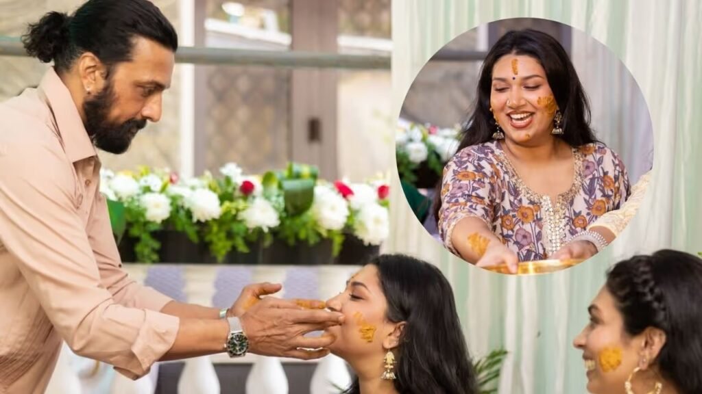 ಸುದೀಪ್ ಅವರ ಅಕ್ಕನ ಮಗನ ಅರಿಶಿನ ಶಾಸ್ತ್ರ ಶ್ರೀಲಂಕಾದಲ್ಲಿ ನಡೆದಿದ್ದು, ಆಪ್ತರು ಹಾಗೂ ಕುಟುಂಬಸ್ಥರ ಸಮ್ಮುಖದಲ್ಲಿ ಅದ್ಧೂರಿಯಾಗಿ ನೆರವೇರಿದೆ. ಡಿಸೆಂಬರ್ 4 ರಂದು ಬೆಂಗಳೂರಿನ ಚಾಮರ ವಜ್ರದಲ್ಲಿ ಶರಣ್ ಸುರೇಶ್ – ತಾರಿಣಿ ವಿವಾಹ ಮಹೋತ್ಸವ ನಡೆಯಲಿದೆ.