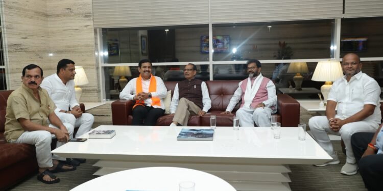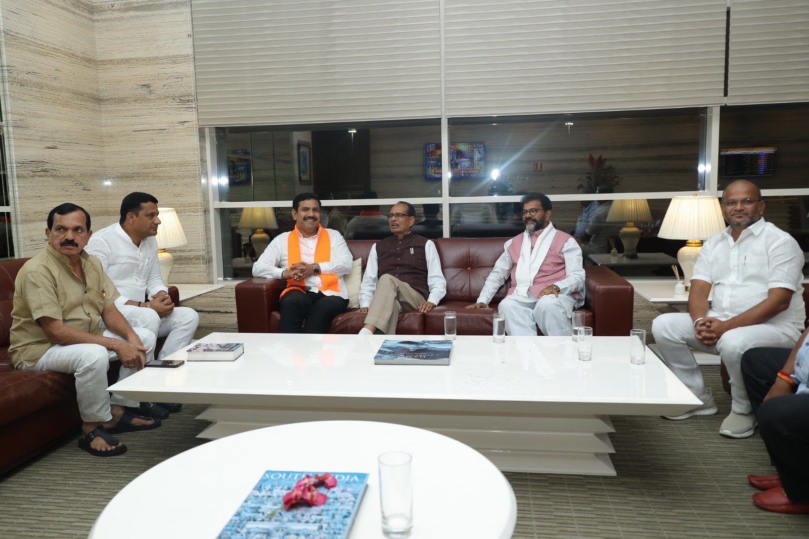 ಖಾಸಗಿ ಕಾರ್ಯಕ್ರಮದ ನಿಮಿತ್ತ ಬೆಂಗಳೂರಿಗೆ ಆಗಮಿಸಿದ ಕೇಂದ್ರ ಸಚಿವ ಶಿವರಾಜ್ ಸಿಂಗ್ ಚೌಹಾಣ್ ಅವರನ್ನು ಬೆಂಗಳೂರು ಅಂತರಾಷ್ಟ್ರೀಯ ವಿಮಾನ ನಿಲ್ದಾಣದಲ್ಲಿ ಬಿಜೆಪಿ ರಾಜ್ಯಾಧ್ಯಕ್ಷ ಬಿ.ವೈ. ವಿಜಯೇಂದ್ರ ಸ್ವಾಗತಿಸಿದರು.