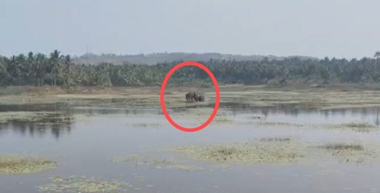 Tags: Karnataka News beatVillagers worriedWild elephants roaming in Brahmanipur Lake